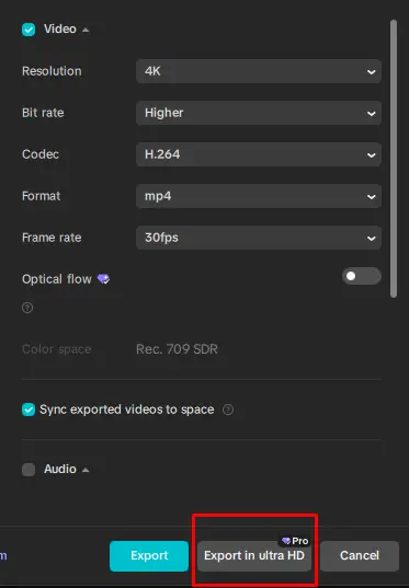 Export in Ultra HD